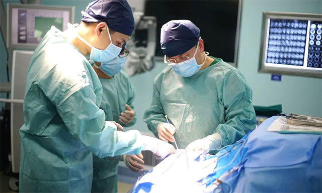 ▲ 正為患者手術(shù)的吳治群博士(右一)