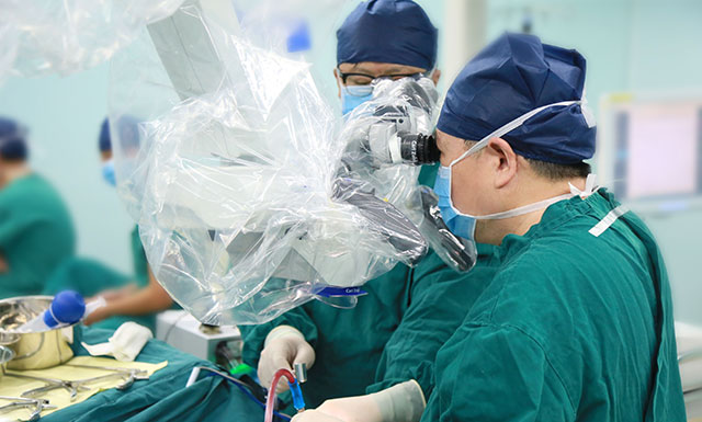 李士其教授在吳治群博士及醫(yī)護團隊協(xié)助下,憑借精湛的手術(shù)技巧和豐富的臨床經(jīng)驗對腫瘤進行精細剝離。在充分保護重要神經(jīng)組織結(jié)構(gòu)及血管的前提下,經(jīng)過5個多小時終于順利切除腫瘤。術(shù)后病理提示為膠質(zhì)瘤。