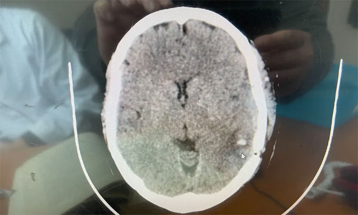 ▲術(shù)后CT示海綿狀血管瘤已被切除