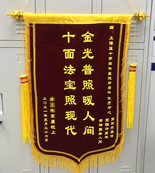 治療過程中,王曉東團隊堅持每日查房,密切關注患者病情變化。整個放療過程結束后,患者恢復良好,左側頸部腫大淋巴結基本消失。在辦理出院當天,王曉東主任不忘反復叮囑患者出院注意事項及復査時間,以及后續(xù)治療方案。對于醫(yī)院專業(yè)細致的服務,患者和家屬非常感動,出院時為王曉東團隊送上錦旗表達真摯的感謝。