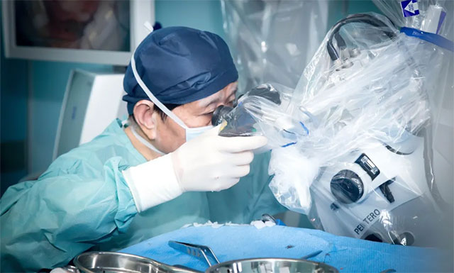 ▲ 沈教授為三叉神經(jīng)痛患者行微血管減壓術(shù)