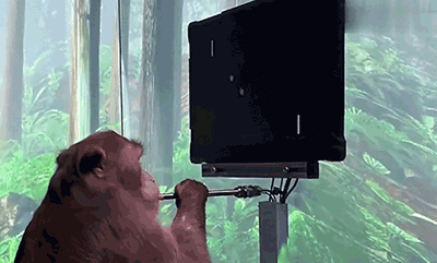 第一階段,讓“猴哥” 用手柄來玩簡(jiǎn)單的基線游戲,同時(shí)通過神經(jīng)植入物,從“猴哥”大腦所釋放的腦電波信號(hào)中傳輸數(shù)據(jù),讓AI算法學(xué)習(xí)腦電波和手部動(dòng)作之間的映射。