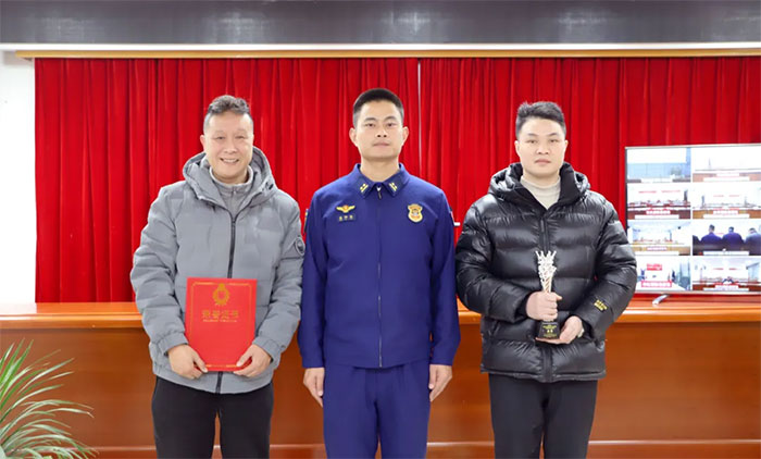 ▲ 閔行區(qū)消防救援支隊(duì)領(lǐng)導(dǎo)為吳春芳副總經(jīng)理頒獎(jiǎng)