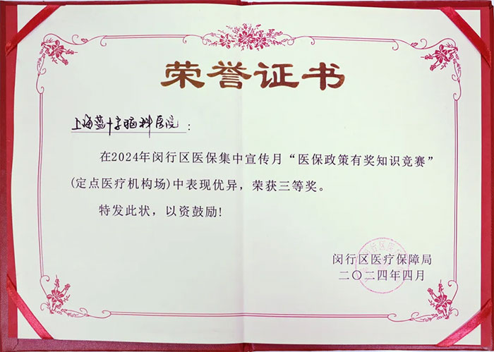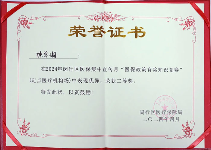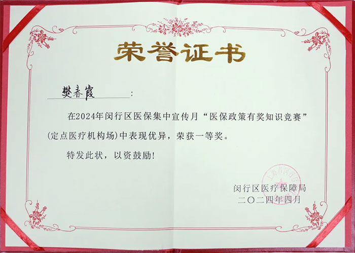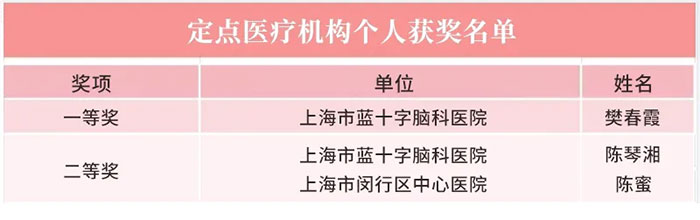 上海藍十字腦科醫(yī)院由張珍珍、張雨萌、楊琴琴組隊出戰(zhàn),在決賽中獲得定點醫(yī)療機構(gòu)三等獎;財務科樊春霞科長、醫(yī)保辦陳琴湘科長則分獲定點醫(yī)療機構(gòu)個人一、二等獎。