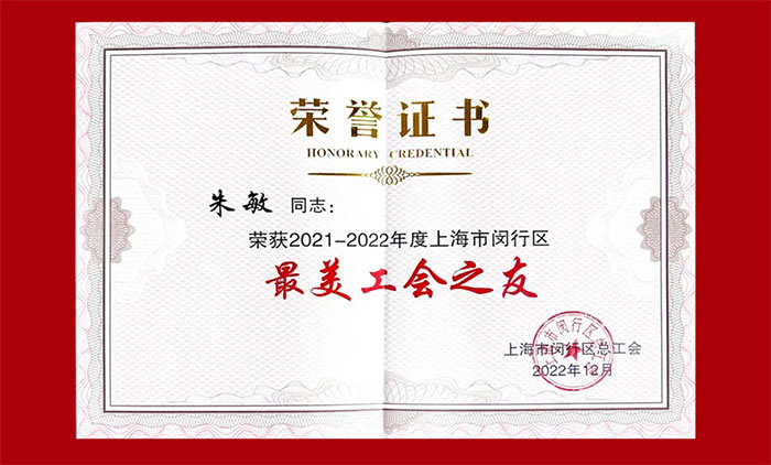 多年來,院工會在吳春芳同志的帶領下,緊緊圍繞醫(yī)院中心,服務大局,認真履行工會職責,促進了醫(yī)院健康、可持續(xù)、高質(zhì)量發(fā)展。醫(yī)院先后獲得上海市和諧勞動關系達標企業(yè)、閔行區(qū)人力資源和社會保障學會“優(yōu)秀會員單位”,連續(xù)兩屆獲得上海市衛(wèi)生健康系統(tǒng)文明單位、連續(xù)四屆獲得閔行區(qū)文明單位等榮譽。院工會獲得閔行區(qū)“先進職工之家”,黨支部書記朱敏同志獲得閔行區(qū)“最美工會之友”和“員工信賴的企業(yè)經(jīng)營管理者”,吳春芳同志在2023年當選為閔行區(qū)社會醫(yī)療行業(yè)工會聯(lián)合會第二屆委員會副主席。