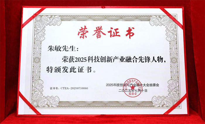 ▲ “2025科技創(chuàng)新產業(yè)融合先鋒人物”榮譽牌匾與證書
