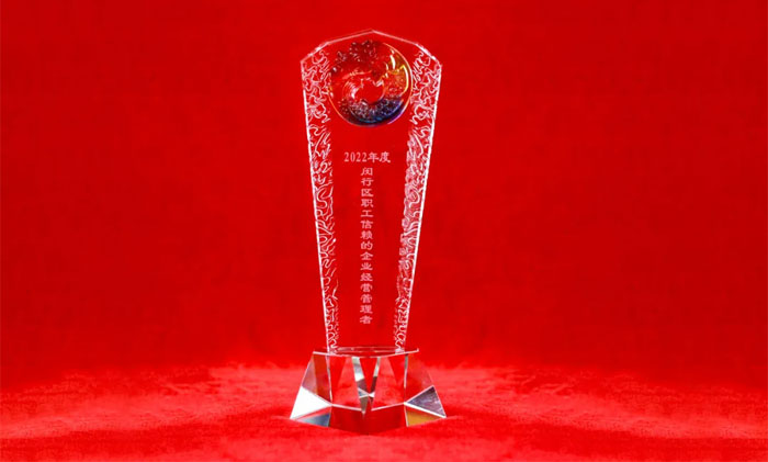 8月15日,屬于朱敏書記“閔行區(qū)職工信賴的企業(yè)經(jīng)營管理者”的獎杯收到啦!