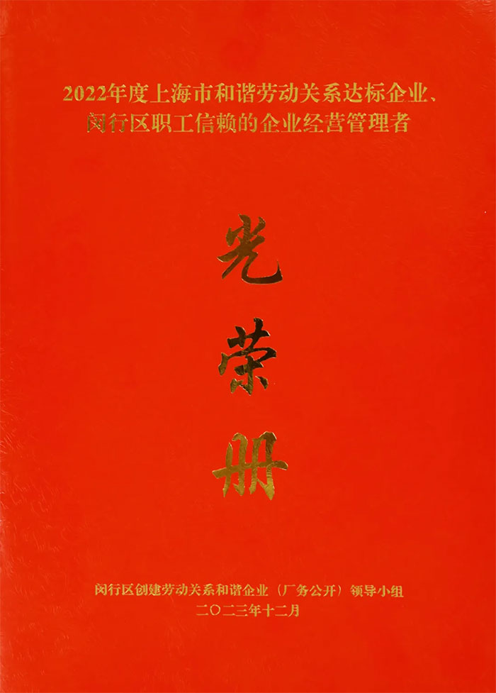 ▲ “上海市和諧勞動關(guān)系達標企業(yè)”榮譽牌匾