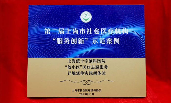 2025年11月27日,上海市社會(huì)醫(yī)療機(jī)構(gòu)協(xié)會(huì)四屆三次會(huì)員代表大會(huì)暨第十二屆管理年會(huì)隆重召開。會(huì)上,在第二屆上海市社會(huì)醫(yī)療機(jī)構(gòu) “服務(wù)創(chuàng)新” 優(yōu)秀案例征集活動(dòng)中,上海藍(lán)十字腦科醫(yī)院“‘藍(lán)小醫(yī)’醫(yī)療志愿服務(wù)異地延伸實(shí)踐新體驗(yàn)”項(xiàng)目榮獲第二屆上海市社會(huì)醫(yī)療機(jī)構(gòu)“服務(wù)創(chuàng)新”示范案例。