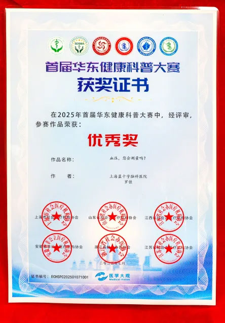 經(jīng)過(guò)兩輪激烈角逐,醫(yī)院選送的作品在【科普短視頻/新媒體推廣/病歷譯寫(xiě)】賽道中表現(xiàn)突出,最終榮獲三等獎(jiǎng)。上海藍(lán)十字腦科醫(yī)院也因積極參與活動(dòng),被活動(dòng)組委會(huì)授予“優(yōu)秀組織獎(jiǎng)”,以感謝醫(yī)院為提升市民健康素養(yǎng)貢獻(xiàn)了一份力量。