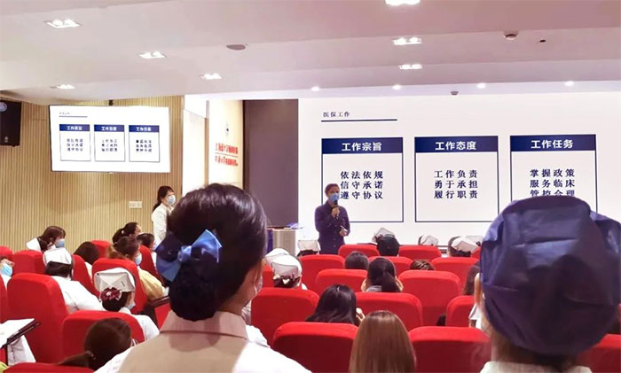 在基層教育上,醫(yī)院將最新醫(yī)保政策、法規(guī)、醫(yī)保藥品目錄等匯編成冊(cè),下發(fā)全院醫(yī)護(hù)共同學(xué)習(xí)。同時(shí),堅(jiān)持做到“時(shí)間、員工、過程、內(nèi)容”四個(gè)全覆蓋,不定期組織人員深入科室,講解、培訓(xùn)醫(yī)保現(xiàn)行政策法規(guī)。以幫助基層員工掌握重點(diǎn)、要點(diǎn),加深理解,強(qiáng)化記憶。