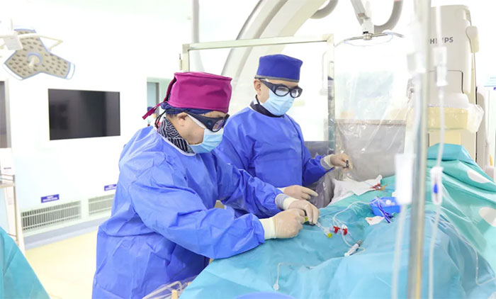 ▲ 席剛明教授(左一)在開展介入手術(shù)