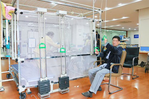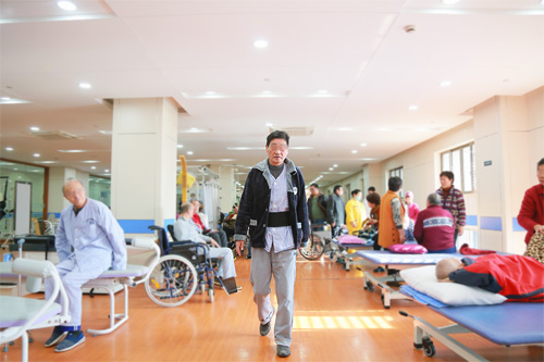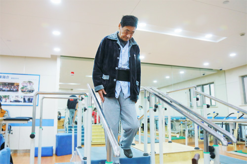 漸漸的,從可以自己起床到站立,從一次邁出兩三步到十幾步,從只能平地行走到走樓梯,用老夫妻倆自己的話說(shuō)——每天都有驚喜。“之前去的康復(fù)醫(yī)院沒(méi)有這么先進(jìn)的設(shè)備,也沒(méi)有那么多醫(yī)生(多科室)聯(lián)合會(huì)診,我們知道這回是找對(duì)醫(yī)院了。”儲(chǔ)阿姨開(kāi)心地告訴筆者。