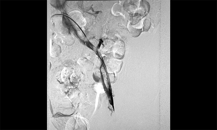 12月15日,席剛明教授在王貴平博士及介入團(tuán)隊(duì)協(xié)助下順利行將一個(gè)形似傘狀的人工濾器經(jīng)患者右側(cè)股靜脈穿刺迅速置入腎靜脈下方,“網(wǎng)”住了通往心血管和肺部的致命栓子,阻擋血液栓子進(jìn)入肺動(dòng)脈,及時(shí)挽救了患者生命。之后對(duì)病變血管進(jìn)行了血栓抽吸術(shù),及接觸性溶栓,抽出了大量血栓,復(fù)查下肢造影示血栓基本消失,下肢靜脈血管再通,整個(gè)手術(shù)順利完成。術(shù)后,患者下肢腫脹好轉(zhuǎn)。