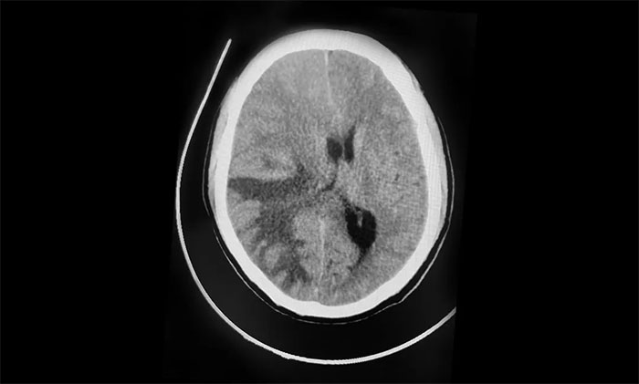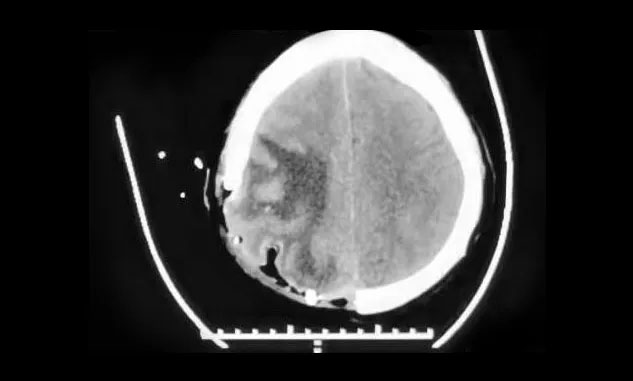 1月5日早晨,張先生反復(fù)出現(xiàn)頭痛、嘔吐。腫瘤科、放療科、神經(jīng)外科6B病區(qū)專家緊急會診,并急查頭顱CT。影像顯示,右側(cè)額頂葉、枕葉見多枚大小不等團塊狀等密度影,最大者約4.2*4.8cm,周圍大片低密度水腫。右側(cè)腦室受壓變窄,中線結(jié)構(gòu)向左側(cè)偏移超過1.0cm。