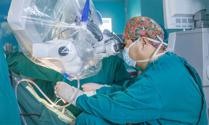 ▲ 楊忠旭教授正在為患者進(jìn)行微血管減壓手術(shù)