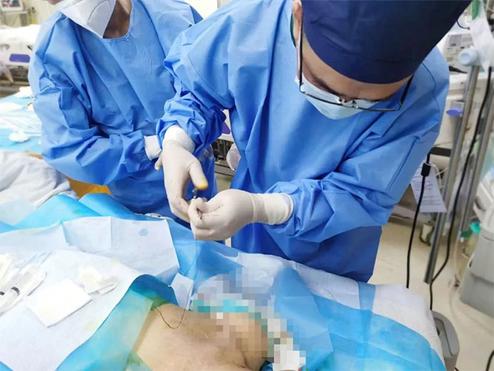 ▲ 張慶成主任團(tuán)隊(duì)正在為患者行透析長(zhǎng)期導(dǎo)管置入術(shù)