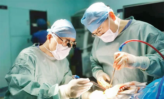 ▲ 顧國山教授(左一)正聚精會(huì)神為患者手術(shù)
