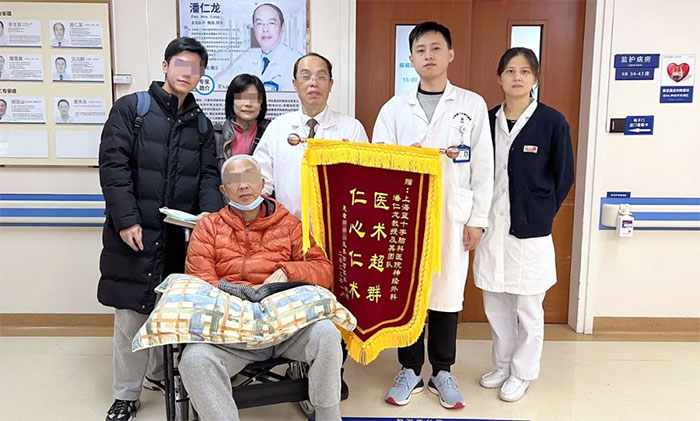 春節(jié)前夕,神經(jīng)外科6B病區(qū)潘仁龍主任收到了一份來(lái)自祖國(guó)臺(tái)灣的特殊“禮物”。“醫(yī)術(shù)超群,仁心仁術(shù)”,這是來(lái)自臺(tái)灣的吳先生臨出院前贈(zèng)予潘主任及藍(lán)十字全體醫(yī)護(hù)人員的,是對(duì)他們醫(yī)術(shù)醫(yī)德的肯定,也籍此表達(dá)吳先生全家內(nèi)心的感激之情。