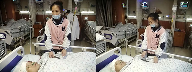 從去年12月19日,重度昏迷的莫鋼廷在妻子小馮的陪伴下,從寧波市第二醫(yī)院國家重點ICU病房轉院到上海藍十字腦科醫(yī)院神經外科6B病區(qū),進行進一步神經重癥昏迷促醒治療。到現(xiàn)在正月十八近兩個半月時間里,小馮始終陪伴著莫鋼廷身邊,沒有回家過一次。