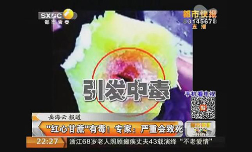 “當時我也沒想太多,就把那節(jié)甘蔗吃了。當天下午,我就感覺肚子不舒服,渾身發(fā)冷,還不停地腹瀉。”趙先生介紹,在吃止瀉藥無效的情況下,他被家人送到醫(yī)院檢查,醫(yī)生說是因為吃了帶紅絲的變質甘蔗造成食物中毒。