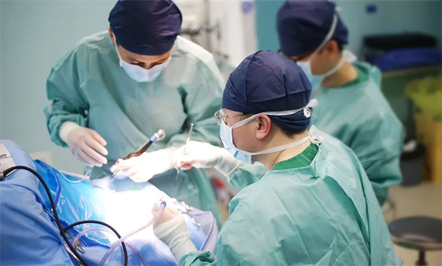 專家團隊臨危不亂、鎮(zhèn)定自若,根據患者的病情緊急制定了周密完善的手術方案,在告知家屬相關風險、可能預后并征得其同意后,于2月3日患者轉入腦科醫(yī)院當天晚上8:00,由潘仁龍主任、吳治群博士組成的專家團隊緊急為患者實施了“顱內血腫清除+去骨瓣減壓+顱內壓監(jiān)護探頭置入+氣管切開”手術。在手術臺上,潘主任現(xiàn)場指導,吳博士主刀,黃秀夫醫(yī)生協(xié)助等,在醫(yī)護人員的共同努力下,手術順利結束,患者安返重癥監(jiān)護室。