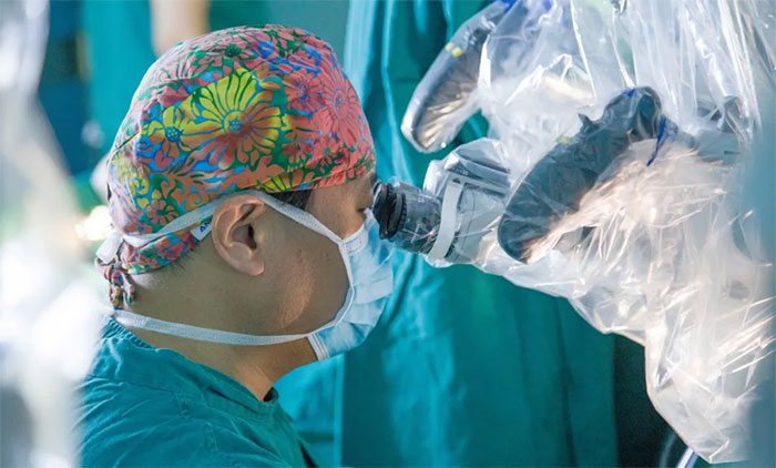 ▲ 楊忠旭教授正在為患者進行微血管減壓手術(shù)