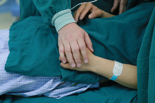 因?yàn)榫植柯樽,整個(gè)手術(shù)過(guò)程,患者神志都非常清醒。一開(kāi)始,霞姐情緒不穩(wěn)定,一會(huì)說(shuō)悶熱,一會(huì)說(shuō)身體酸疼,在手術(shù)臺(tái)上動(dòng)來(lái)動(dòng)去。面對(duì)這種情況,巡回護(hù)士只得拉著患者的手,一會(huì)給她打開(kāi)消毒單,讓她透氣,一會(huì)給她擦汗,并不停的安慰她。