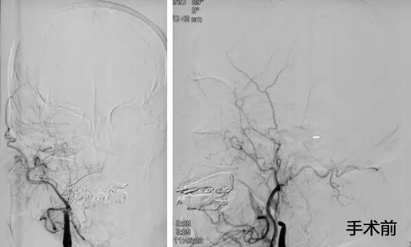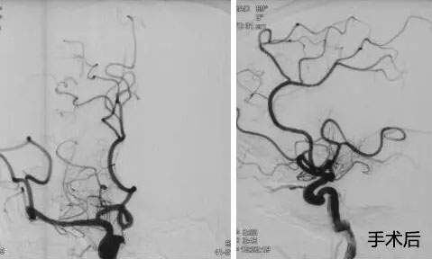 ▲ 患者取栓前后DSA造影圖