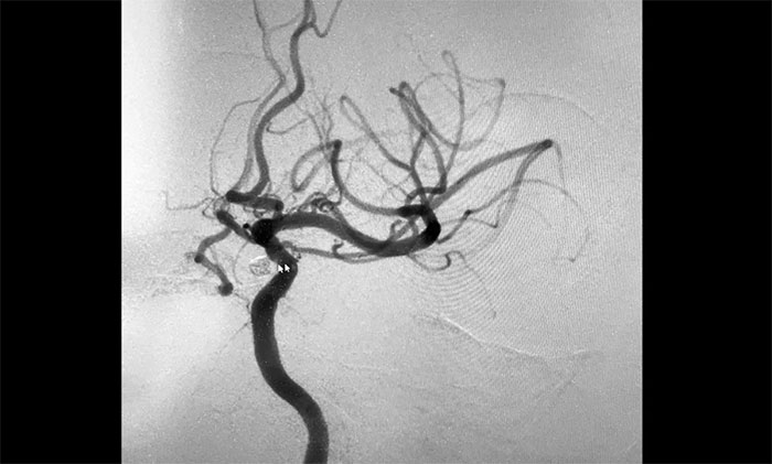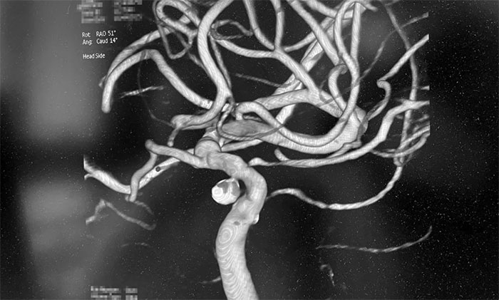 為進(jìn)一步明確診斷,王大媽接受了全腦血管造影DSA檢查,發(fā)現(xiàn)左頸內(nèi)動脈眼動脈段動脈瘤(約3mm)伴左頸內(nèi)動脈眼動脈段重度狹窄。神經(jīng)內(nèi)科4A病區(qū)主任席剛明教授、神經(jīng)內(nèi)科4A病區(qū)副主任王貴平博士會診指出,左頸內(nèi)動脈眼動脈段重度狹窄就是王大媽右側(cè)肢體活動不利等癥狀的“元兇”,如不及時解除血管狹窄,一旦頸內(nèi)動脈閉塞,就會發(fā)生腦梗死!此外,一旦腦動脈瘤破裂,將導(dǎo)致蛛網(wǎng)膜下腔出血!“左頸內(nèi)動脈眼動脈段重度狹窄”和“左頸內(nèi)動脈眼動脈段動脈瘤”就像潛伏在患者體內(nèi)的“不定時炸彈”,隨時都有被“引爆”的風(fēng)險,導(dǎo)致嚴(yán)重致殘甚至危及生命。