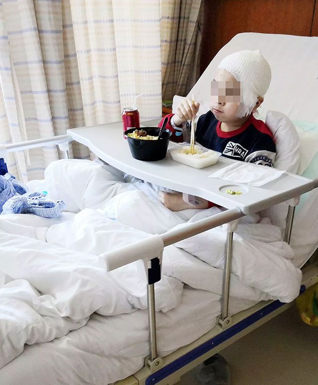 “他現(xiàn)在胃口好多了,希望兒子能趕快好起來,健康成長,快快樂樂的。”術(shù)后十天,再見龍龍時,他正在津津有味地大口吃飯,身體恢復(fù)良好。母親阿花說,再觀察幾天就能出院回家上學(xué)了。