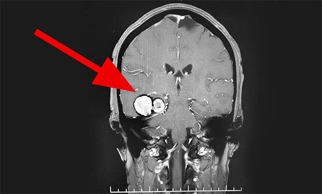 ▲ MR顯示“血管瘤”位于右側(cè)顳葉