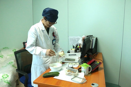 忙碌半天,李魯萍主任終于可以吃一頓簡(jiǎn)單的午飯