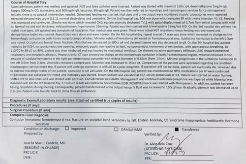 菲律賓當?shù)蒯t(yī)院提供的病情介紹
