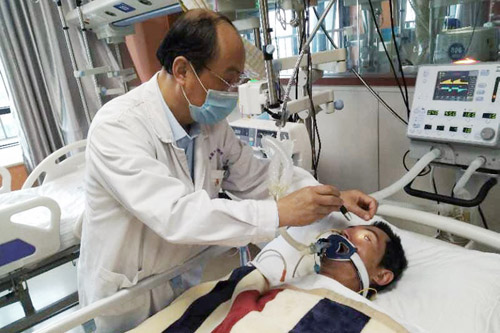 當病人送達時,病情進一步惡化,無自主呼吸,必須隨車佩戴便攜式呼吸機。潘主任發(fā)現(xiàn)這一情況后,為孫先生開啟了“綠色通道”,將他先行送進配有呼吸機的8樓重癥監(jiān)護室。