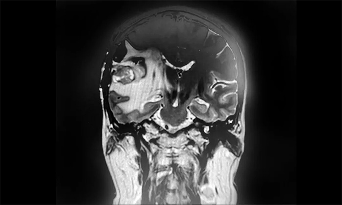 ▲ MR示右側(cè)顳葉占位,占位效應(yīng)明顯