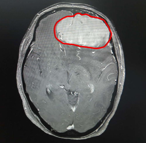 頭顱MRI影像清晰顯示了巨大的腦膜瘤