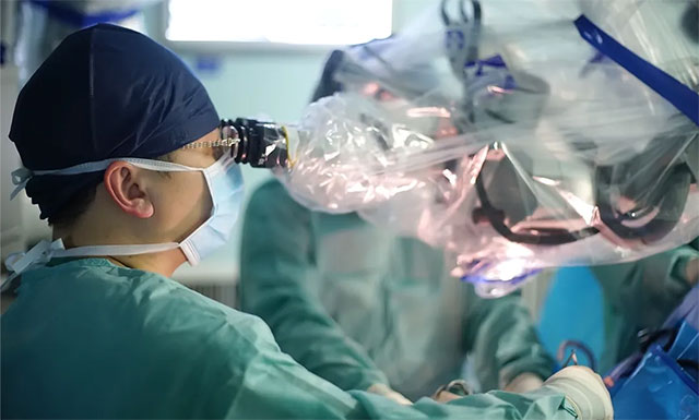隨后,專家團隊根據(jù)患者的病情制定了周密完善的手術方案,在獲得家屬支持,手術準備就緒后,于4月24日,潘仁龍主任、吳治群博士領銜的專家團隊為患者進行了顱內(nèi)血腫清除手術。術中,蔡司顯微鏡(雙熒光)下可見,患者腦組織內(nèi)側淺層有較多暗紅色凝塊,逐步清除血凝塊,血凝塊呈分葉狀,并徹底清除術野血凝塊,經(jīng)過醫(yī)護人員兩個多小時的通力合作,手術順利結束,患者安返神經(jīng)外科重癥監(jiān)護室。