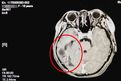 吃了一個多月的藥,倩倩的病情有所控制,家里人也不想在女兒的腦部動手術(shù),希望能采取保守治療的方式走向康復(fù)。沒想到停藥一段時間后,倩倩的病情又開始復(fù)發(fā),并且加重,因為腦出血,倩倩的視力也受到影響(視野缺損)。