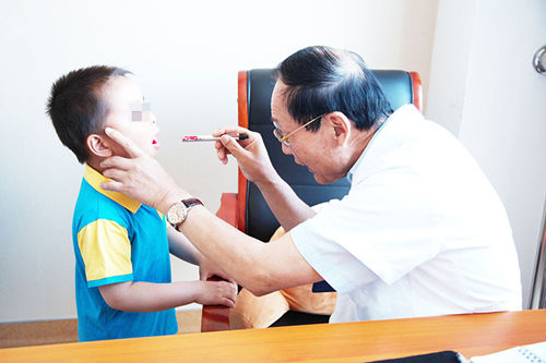 復(fù)查時,侯增欣主任在為亮亮細(xì)心檢查