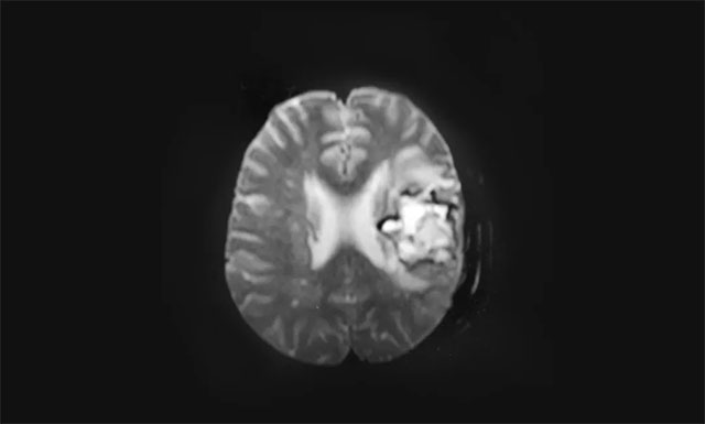 入院后,完善患者各項(xiàng)檢查,發(fā)現(xiàn)患者不能言語,右側(cè)肢體肌力為1級,肌張力增高。