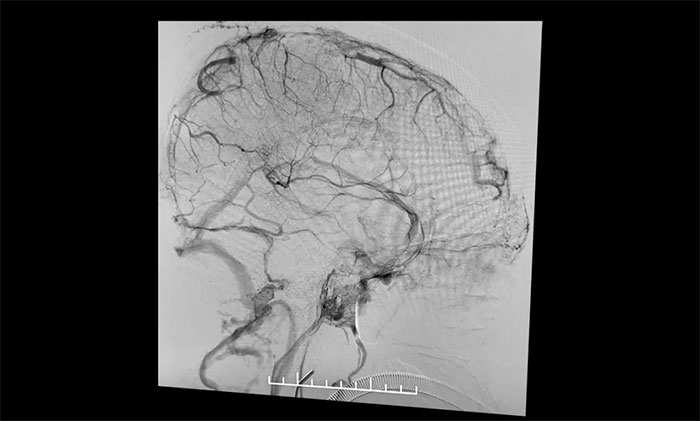 在麻醉科團(tuán)隊(duì)及導(dǎo)管室介入團(tuán)隊(duì)的密切配合和監(jiān)護(hù)下,4A腦血管病一科主任席剛明教授、4A腦血管病一科副主任王貴平博士小心探索,一邊“疏通”,一邊不斷切換正位及側(cè)位造影,避免造成額外損傷。經(jīng)過3個(gè)多小時(shí)的連續(xù)奮戰(zhàn),經(jīng)多次支架取栓、導(dǎo)管抽吸,取出大量暗紅色血栓,復(fù)查造影見上矢狀竇顯影明顯改善,竇匯、右側(cè)橫竇、乙狀竇顯影改善,左橫竇、乙狀竇顯影可,患者顱內(nèi)靜脈竇順利再通。行XperCT未見顱內(nèi)出血。