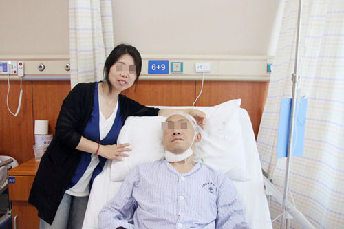 患者劉先生和愛(ài)人在一起,這是手術(shù)后第四天,他意識(shí)清楚,精神良好
