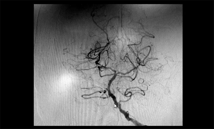 術(shù)后康復(fù)觀察一月余,于耀宇主任團(tuán)隊(duì)再次為曹老伯行右側(cè)頸動(dòng)脈支架置入及左側(cè)椎動(dòng)脈支架置入手術(shù)。術(shù)中造影顯示,右側(cè)頸內(nèi)動(dòng)脈起始段重度狹窄,狹窄長(zhǎng)度8mm左右。左側(cè)椎動(dòng)脈 V4 段重度狹窄,長(zhǎng)度6mm左右。運(yùn)用嫻熟扎實(shí)的技術(shù),在充分做好腦保護(hù)的前提下經(jīng)過(guò)多次球囊擴(kuò)張后,順利釋放支架于狹窄處。造影提示支架打開(kāi)良好,血管狹窄基本恢復(fù)正常,支架貼壁佳,支架內(nèi)血流通暢,遠(yuǎn)端血流良好。