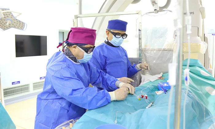 ▲ 席剛明教授、王貴平博士在為患者手術(shù)
