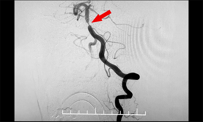 4A腦血管病一科主任席剛明教授,4A腦血管病一科副主任王貴平博士會(huì)診指出,該患者為基底動(dòng)脈主干病變,呈現(xiàn)為“一線天”樣狹窄,考慮基底動(dòng)脈重度狹窄為患者右側(cè)肢體麻木并加重的根源。并且,狹窄處隨時(shí)可能形成血栓引發(fā)血管急性閉塞,一旦閉塞,患者將可能出現(xiàn)深昏迷、四肢癱瘓,甚至危及生命,可以說“命懸一線”,即使僥幸保住性命,大概率也會(huì)成為植物狀態(tài)或遺留其他嚴(yán)重殘障。