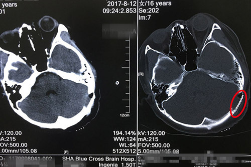 家住揚州的靜靜是一個美麗活潑的少女,今年剛上高中,是家中獨女,備受寵愛。她還是一個愛畫畫的姑娘,家里掛滿了她畫的畫。今年暑假的一個晚上,她在從繪畫班下課、騎著電瓶車回家的路上,與一輛小轎車發(fā)生擦碰。本來只是皮膚擦傷,沒有大礙,但是過了幾天,靜靜說頭暈,不舒服,于是家人帶著她到當?shù)蒯t(yī)院做了檢查,結(jié)果顯示左側(cè)后顱窩占位性病變。鑒于病情復雜,醫(yī)生讓靜靜轉(zhuǎn)入上級醫(yī)院。父母正不知所措之際,朋友向他們介紹了上海藍十字腦科醫(yī)院,于是父母就帶著女兒來到了上海。
