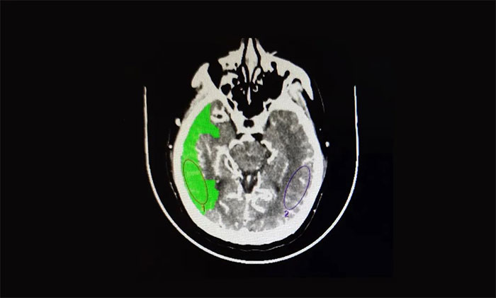 ▲ 頭顱CTP:右側(cè)大腦半球腦組織灌注不足