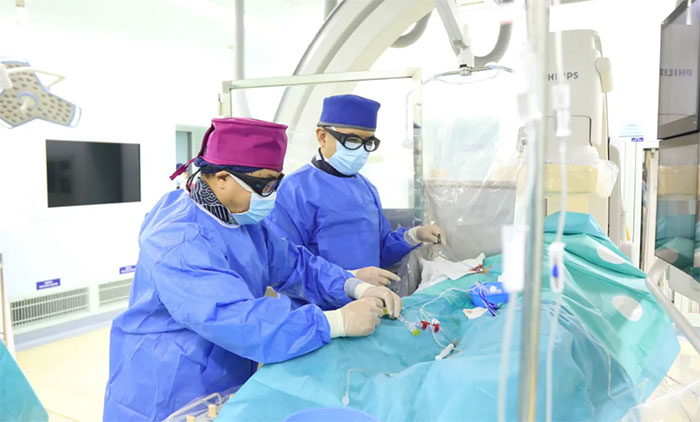 4A腦血管病一科主任席剛明教授、4A腦血管病一科副主任王貴平博士圍繞患者病情和檢查結(jié)果綜合研判,為患者制定了詳細的手術(shù)方案,即通過“零交換”技術(shù)施行微創(chuàng)介入,行右側(cè)大腦后動脈球囊擴張術(shù)+支架置入術(shù)。