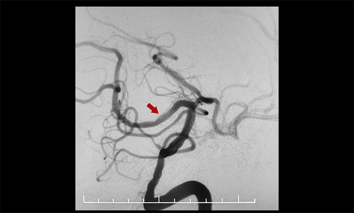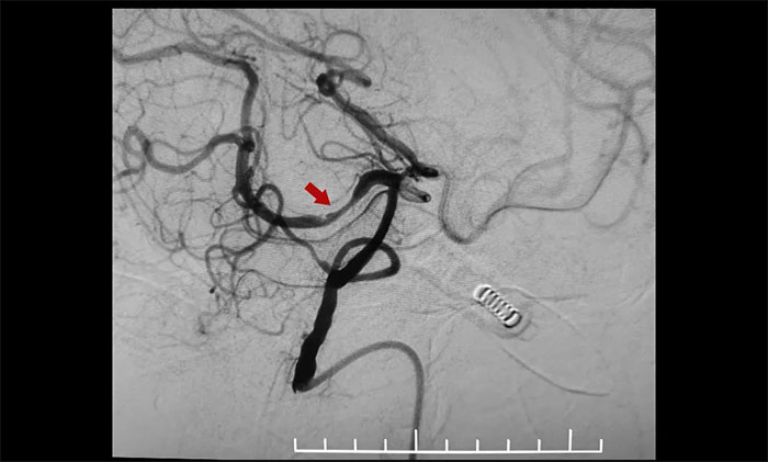 ▲ 術(shù)前,右側(cè)大腦后動脈重度狹窄